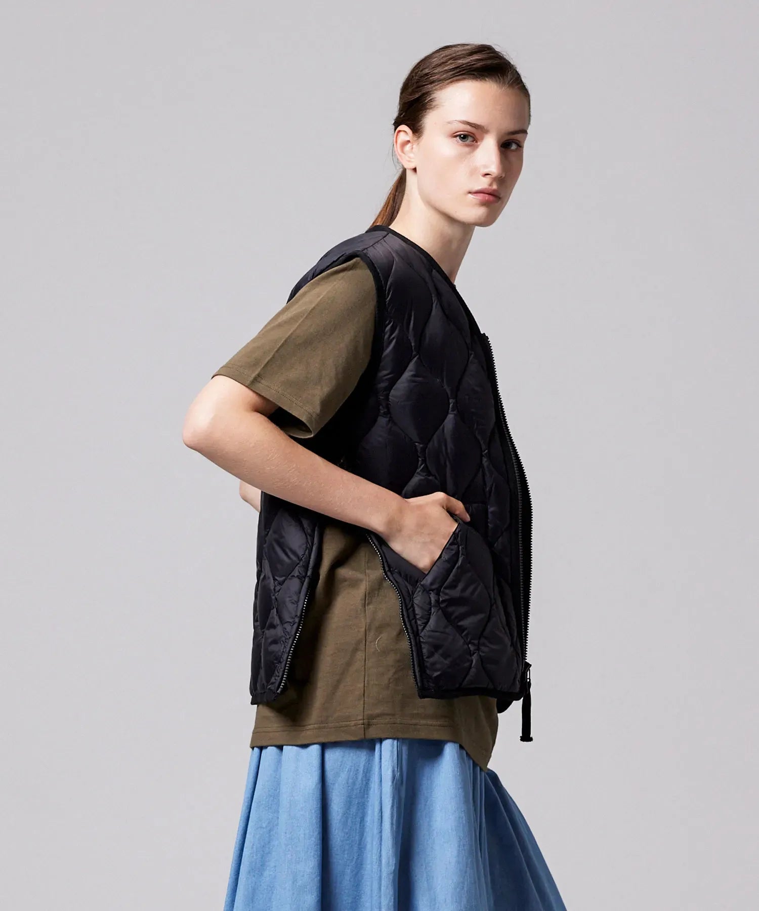 Unisex Military Hi-Neck W-Zip Down Vest (Soft Shell)