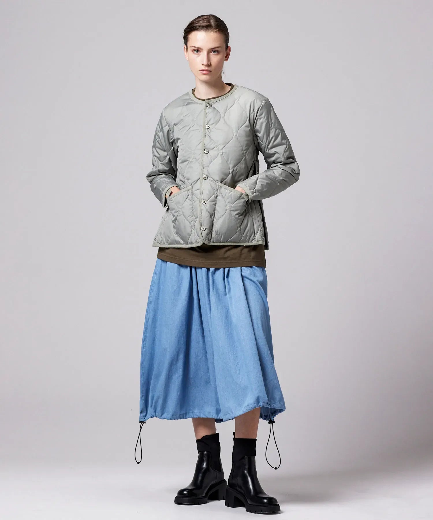 Unisex Basic Hi Neck Down Jacket + Knit Sleeves