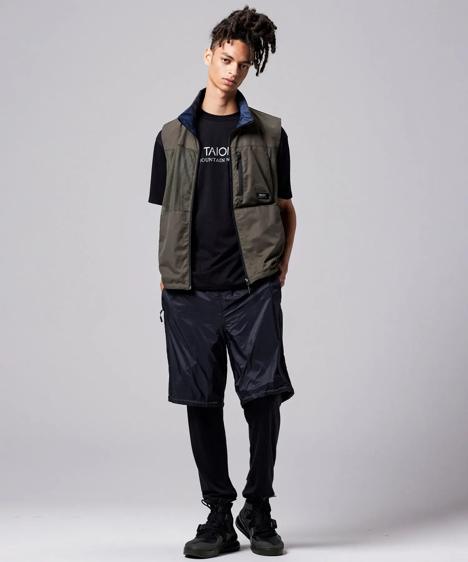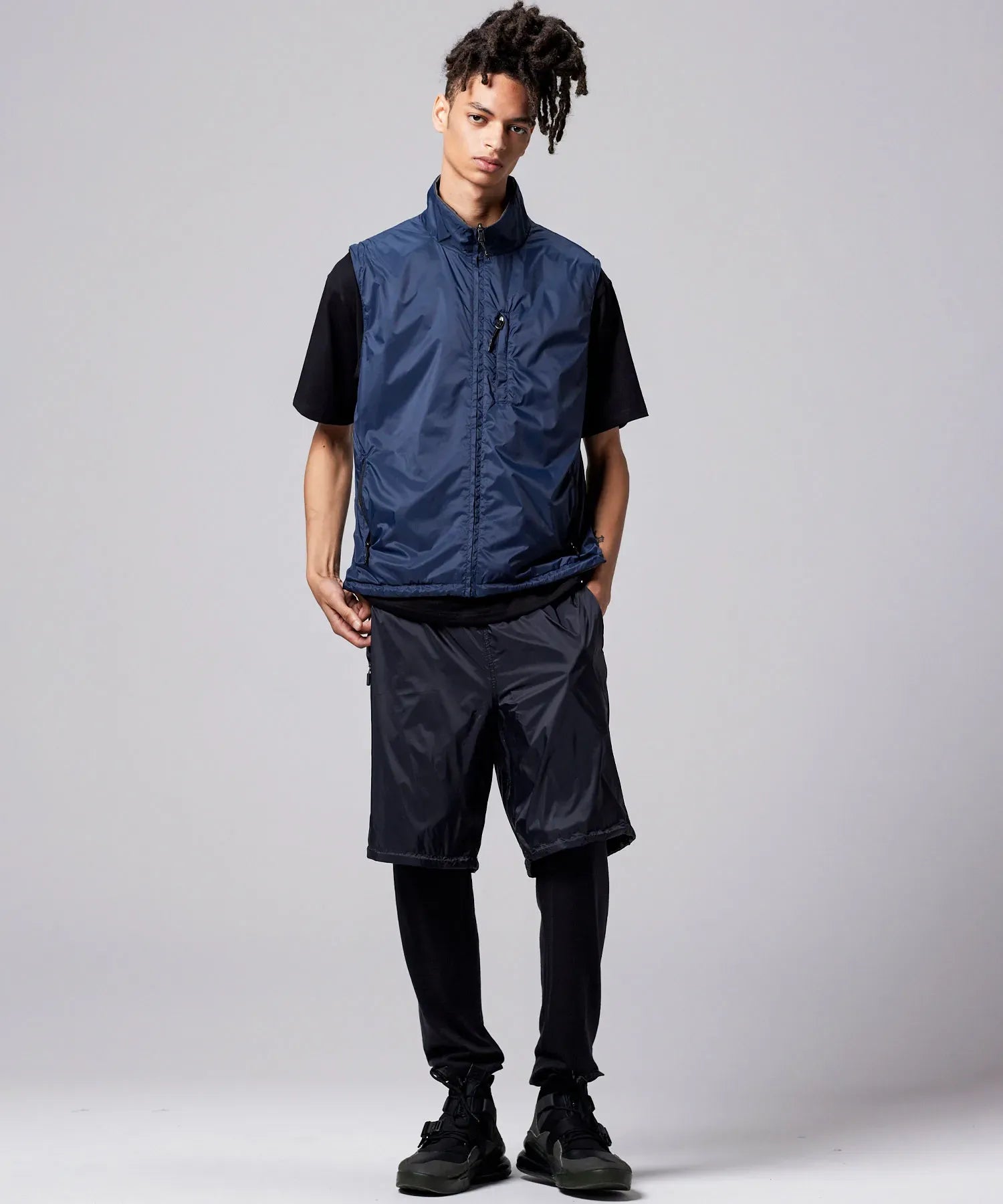 Unisex Basic Sports Hi-Neck W-Zip Detachable Light Jacket