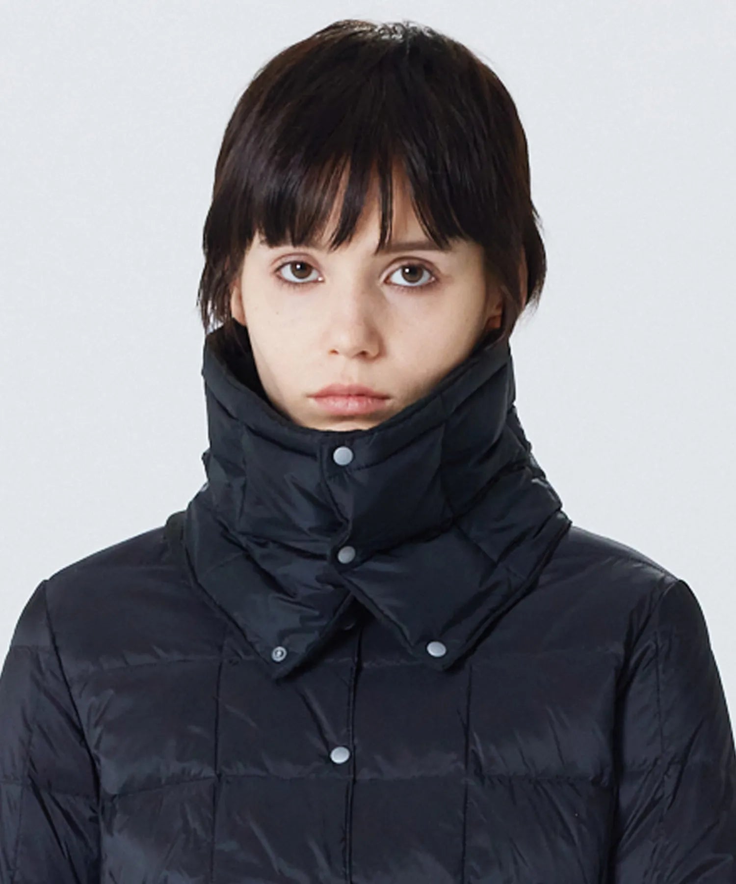City Single Snap Button Crew Neck Long Down Coat