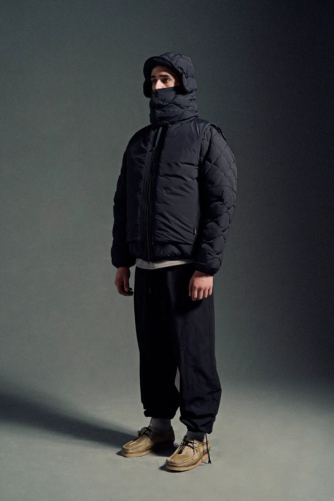 Unisex Work W-Zip Hood Rib Down Jacket