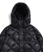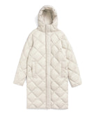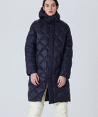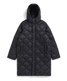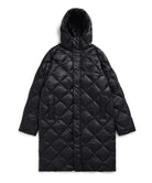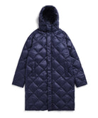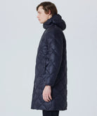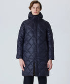 The hooded down coat is designed with the concept of "Compactly carrying your outerwear." This is warm, light, and compact, making it an essential piece for the future. It's a versatile item that's great to have on hand in a suitcase, bag, or car. This series from the CITY LINE has a comfortable firmness to the fabric with diagonal quilting, creates a chic and classic look.  The product is designed unisex sizing. Hand washable at home.