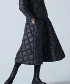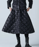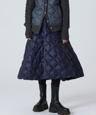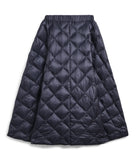 This down skirt is made using the same material as the CITY LINE series, providing a light and soft feel. It's designed to be worn on its own or layered over pants for added warmth. The moderately flared A-line silhouette, designed with ease of movement in mind, complements both casual and elegant styles, offering a mature yet cute look that's perfect for staying warm. The CITY LINE fabrics are carefully selected for their lightness and soft texture. The diagonal quilting creates a chic and classic image. Hand washable at home.