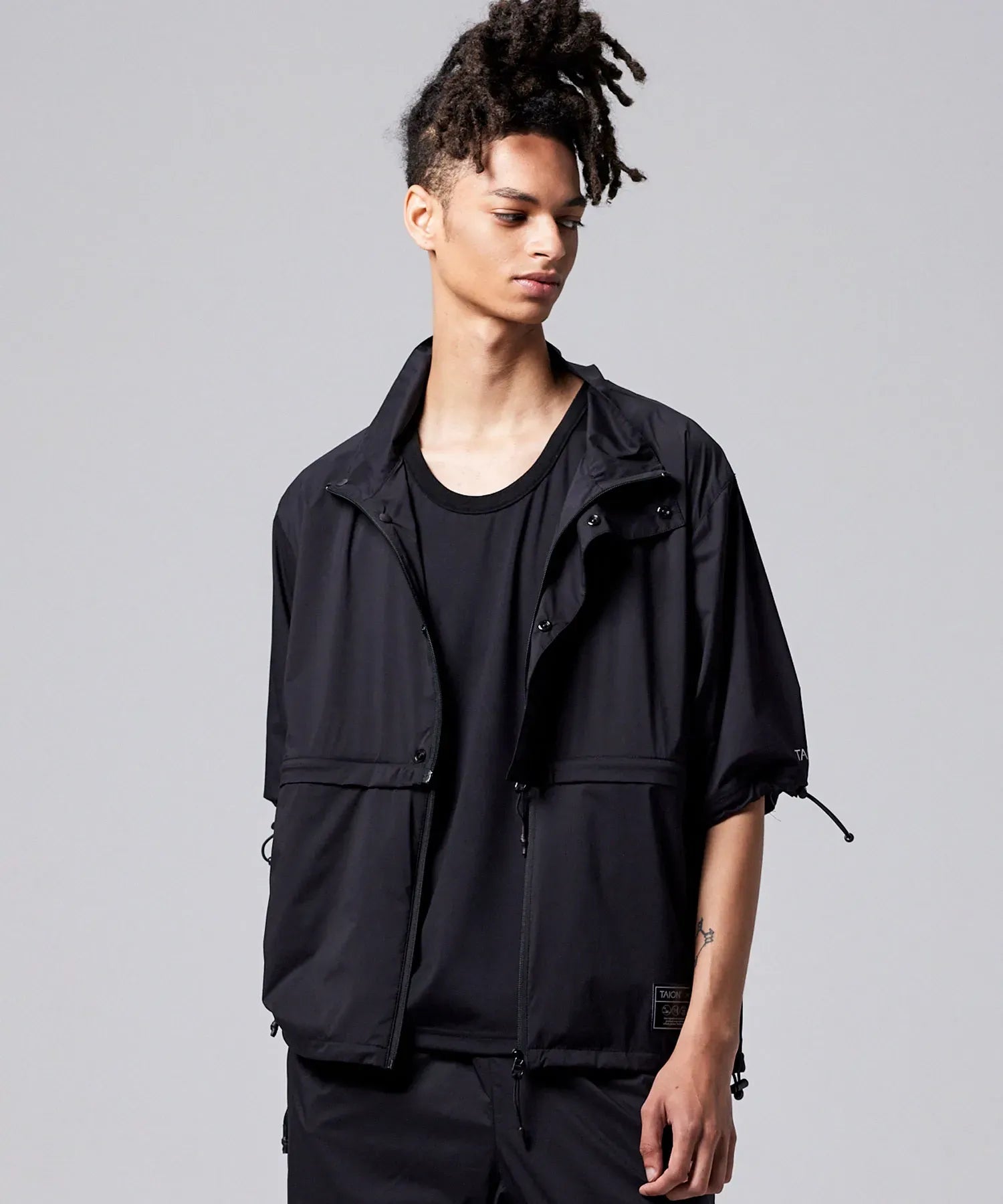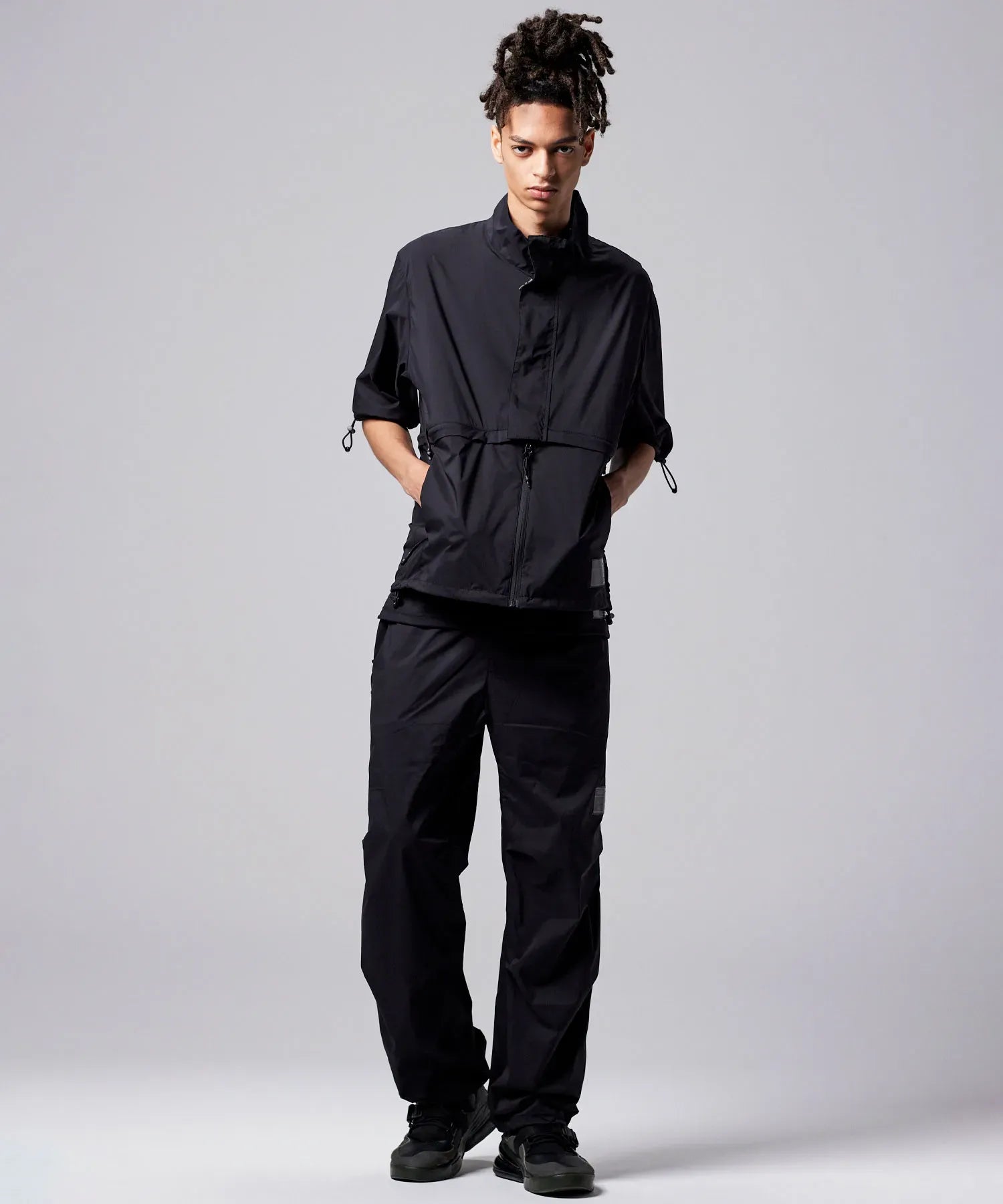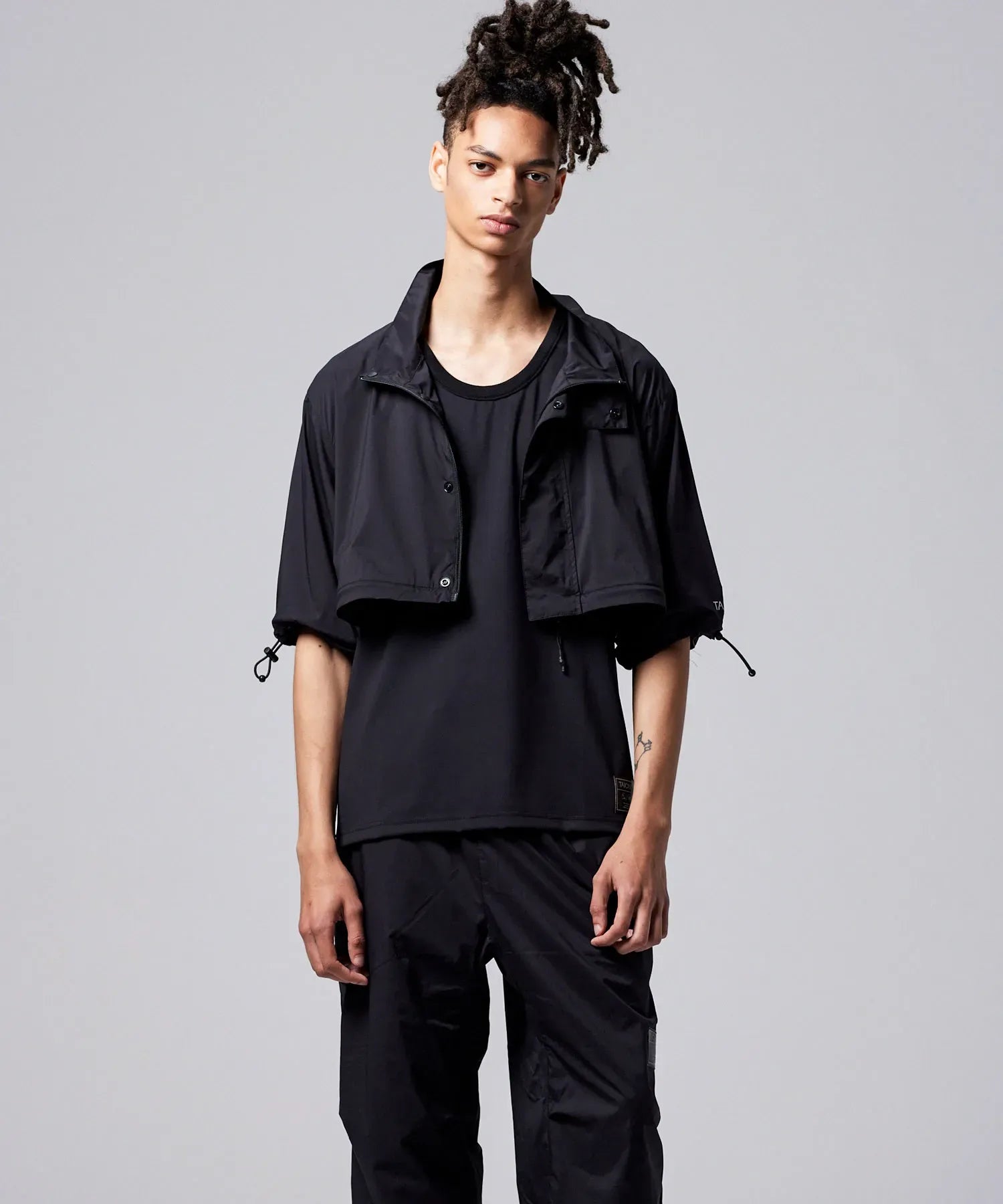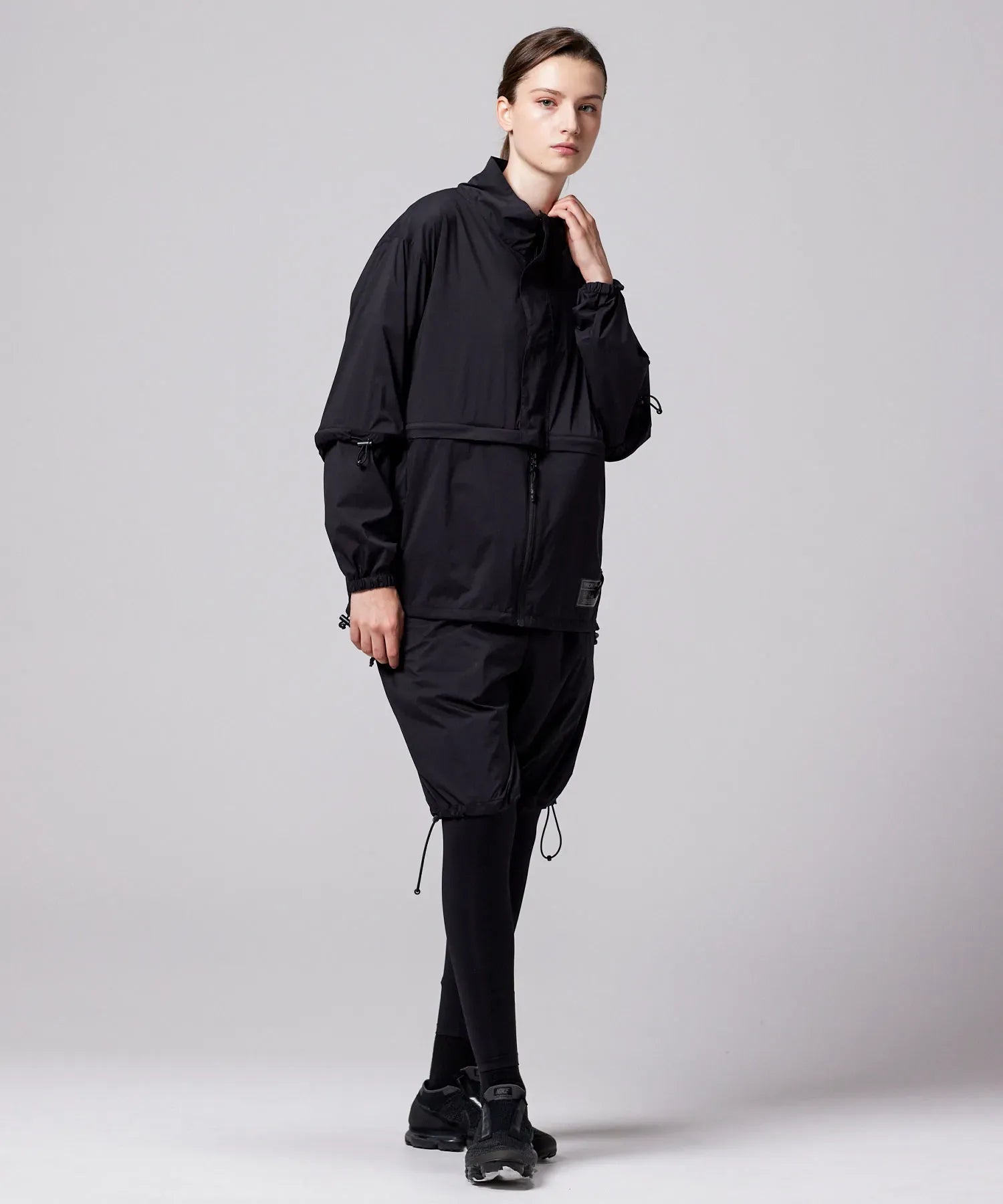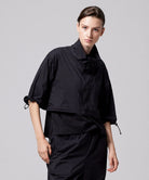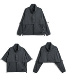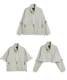 Featuring fully detachable sleeves and a removable hem, it transforms into four distinct styles—standard or cropped, with either long or short sleeves—so you can adapt it to different weather, settings, and looks. Breathable underarm vents, adjustable details, and a relaxed fit enhance comfort and mobility throughout the day.