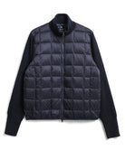 The inner down jacket combines the warmth of down with the comfort of knit fabric at the neck and sleeves, offering a cardigan-like feel. Its lightweight and versatile design makes it perfect for layering under jackets and coats, or wearing on its own over T-shirts, shirts, and sweatshirts. Experience the unique comfort of this innovative inner down, blending knit and down materials. The product is designed unisex sizing. Hand washable at home.